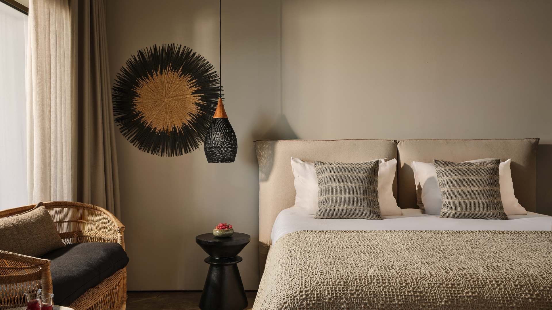 The Infinity Blue Room commands panoramic, uninterrupted 180° views of the storied Mediterranean Sea. Upon entering the room, a seemingly endless view of blue beckons from beyond. Each room is fitted with all the luxuries, comforts, and amenities needed for a restful and rejuvenating stay. Slumber in a king-sized bed, or relax on the private balcony with a sitting area. Inside, contemporary earthy tones accented by ethnic patterns instill a sense of belonging. At the touch of a button, the intuitive KNX system curates every aspect of lighting and temperature.